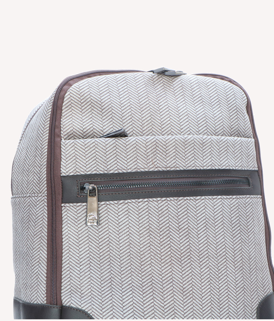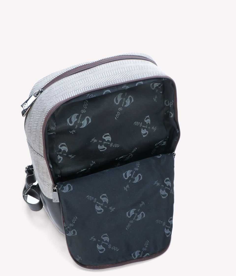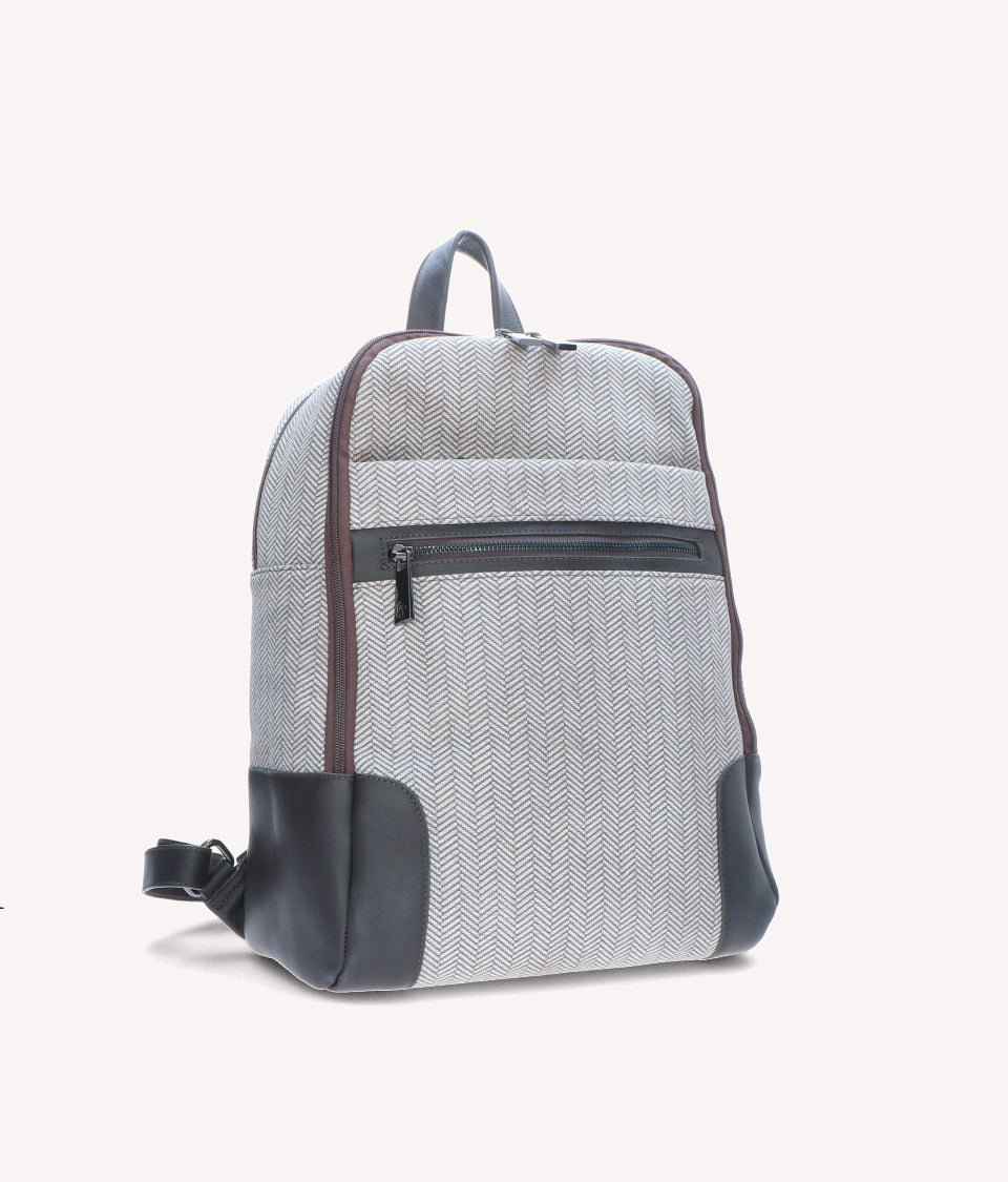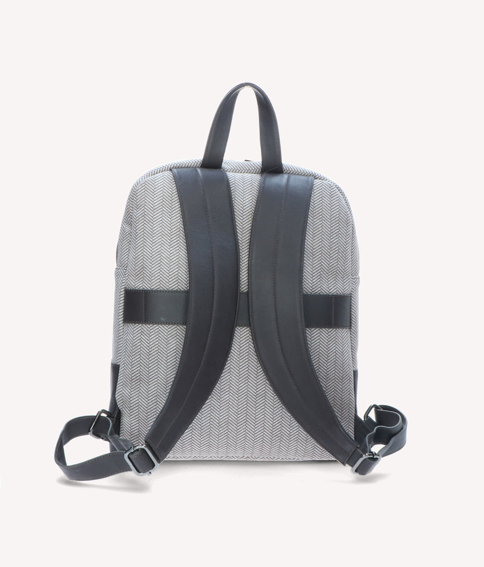 Zaino da lavoro porta Laptop, il connubio perfetto tra stile contemporaneo e praticità. Realizzato in pelle rigenerata, VERA PELLE 100% riciclata, con una trama a spina di pesce arricchito da dettagli in pelle primo fiore, come spallacci e bordi, per un look premium. Funzionalità intelligente: Ampio scomparto principale con tasca porta laptop, tasche frontali per un accesso rapido agli oggetti essenziali, sistema di organizzazione interno con vani multifunzione, cinghie regolabili per assicurare comfort durante un utilizzo prolungato. La sua estetica minimalista con dettagli curati fanno di questo zaino un must-have per i professionisti che desiderano distinguersi con discrezione.
