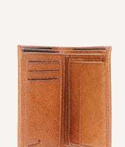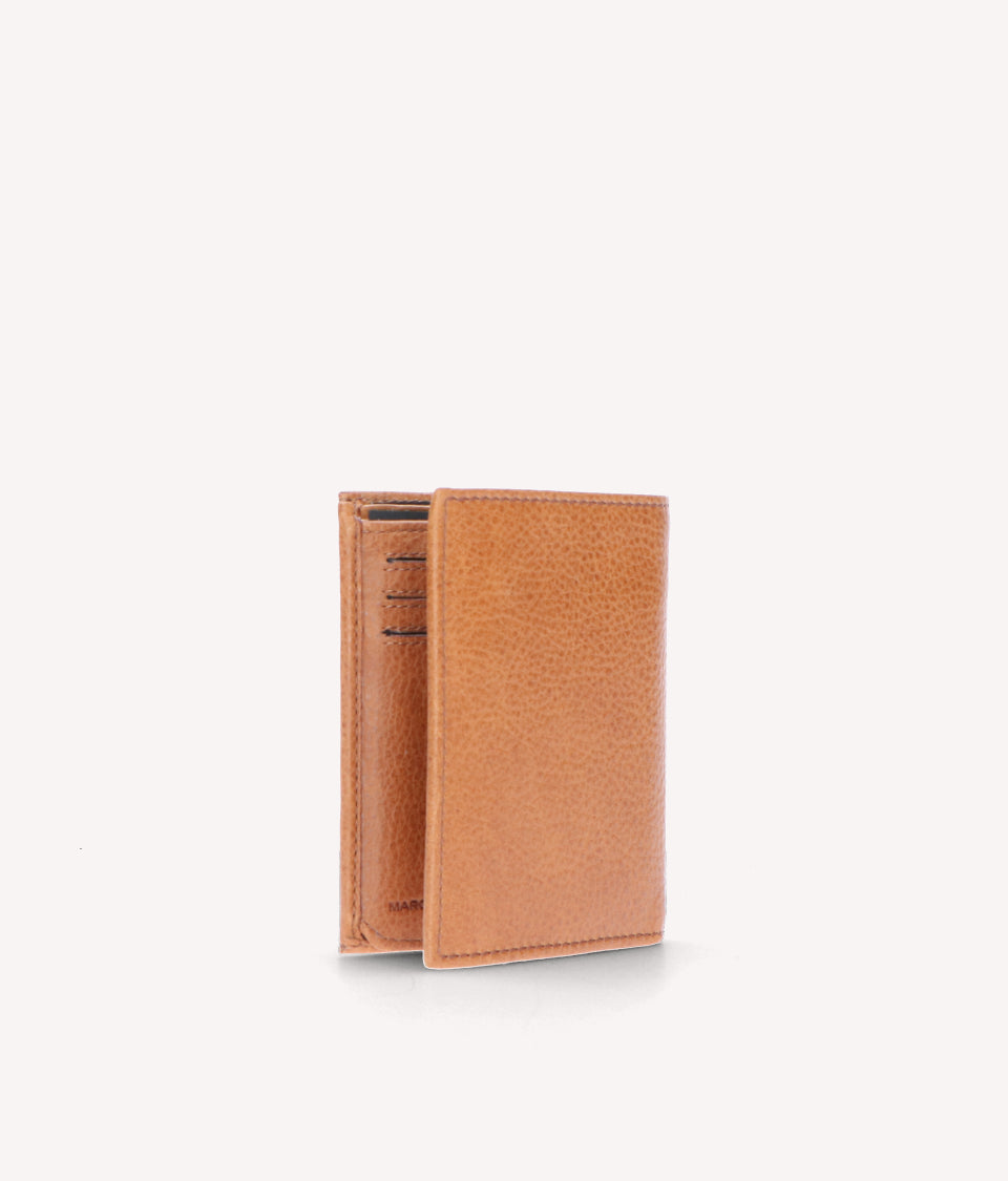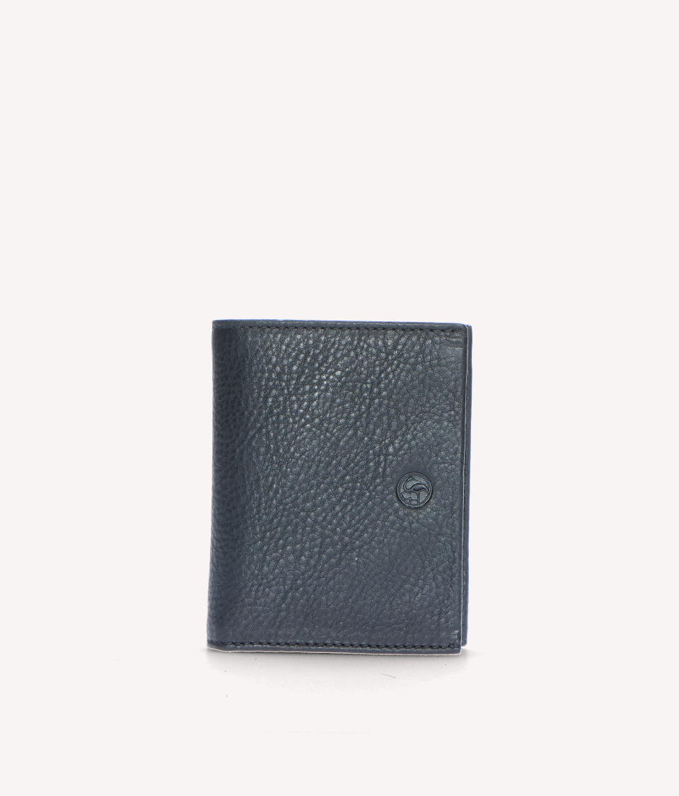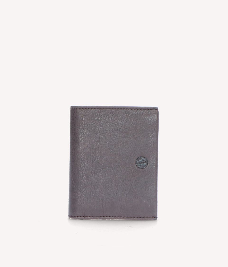 Portafoglio in pelle 100% Made in Italy, apertura verticale "a libro". Doppio scomparto per banconote, portamonete, patta con portadocumenti in rete trasparente, sei tasche per tessere. Protezione RFID.