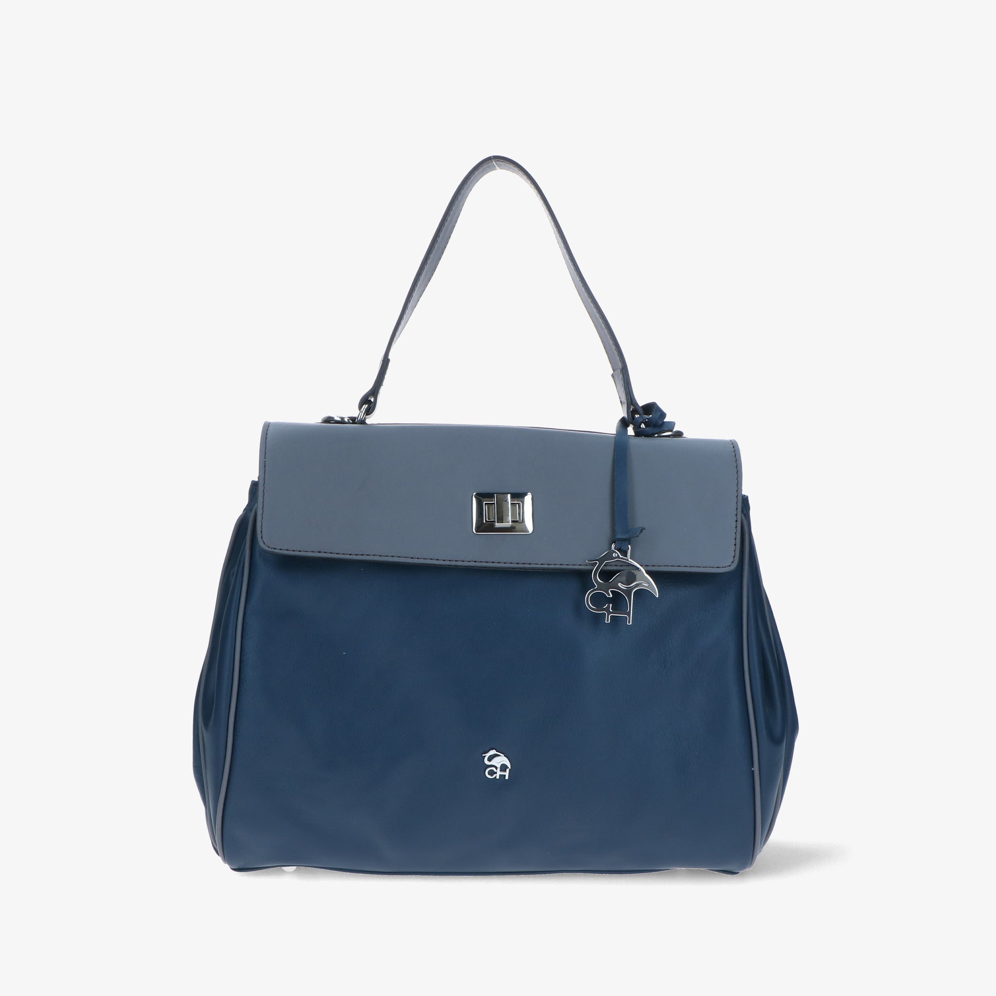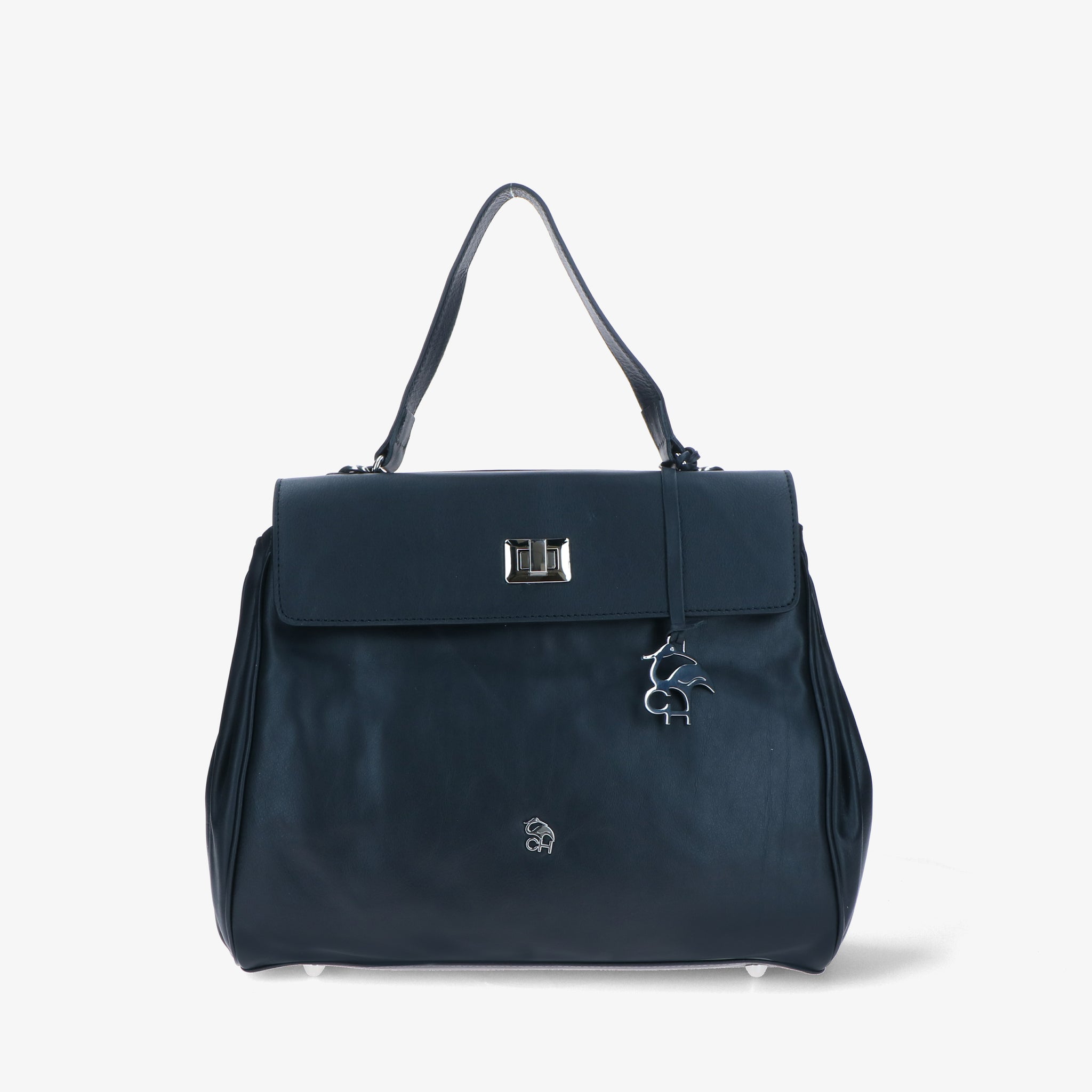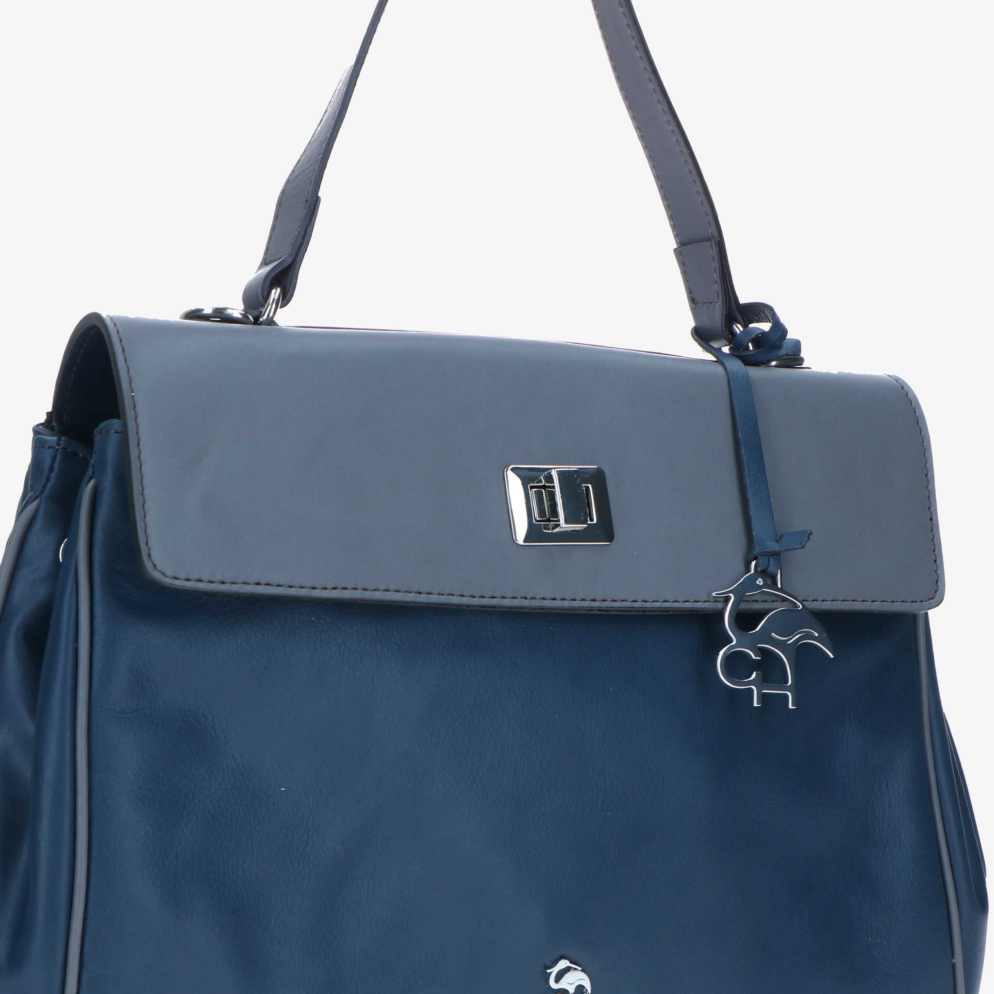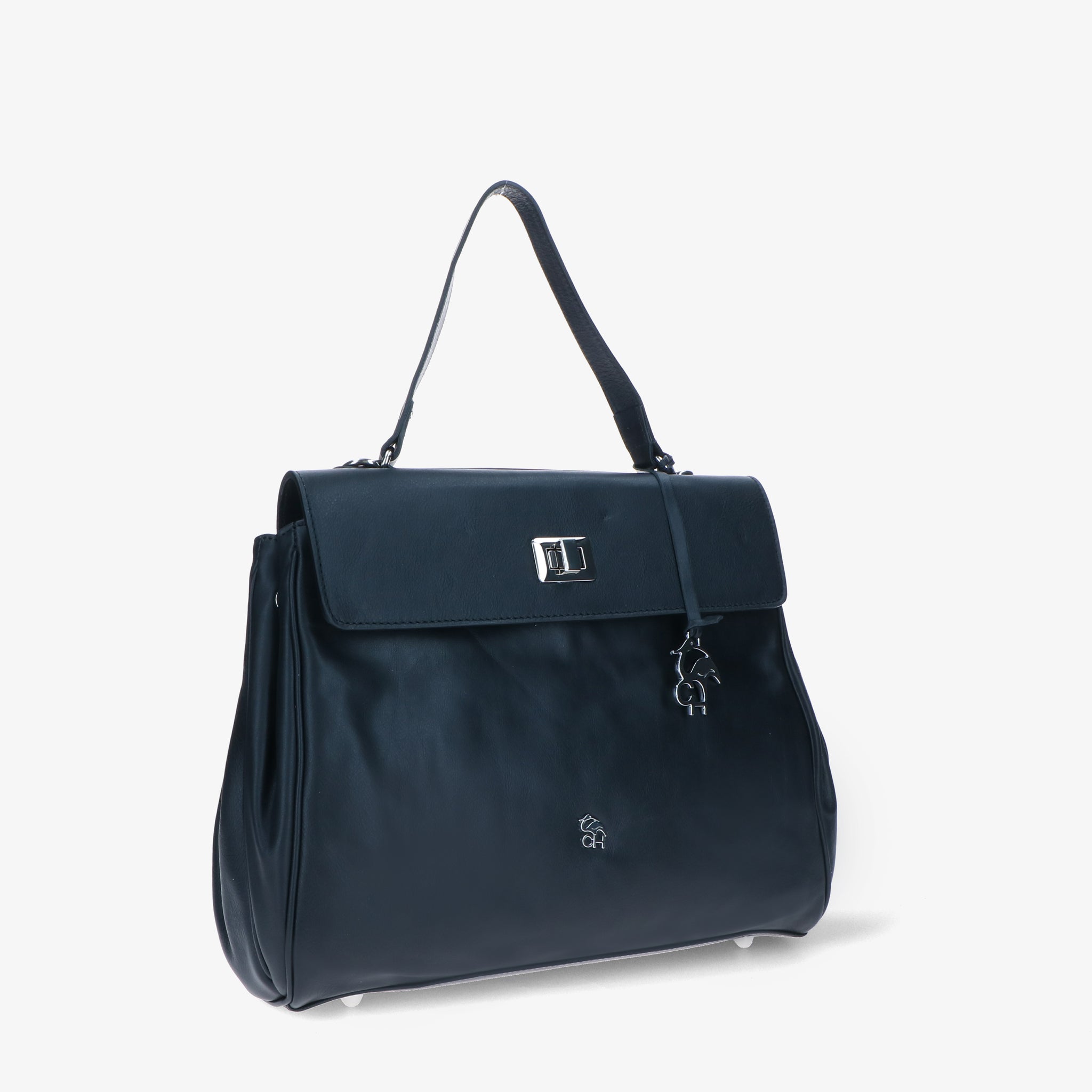 Borsa a spalla in pelle liscia e morbida, dal design elegante e strutturato. La patta si aggancia a due girelli twist-lock: quello interno chiude il primo scomparto, quello esterno racchiude entrambi, per una gestione pratica dei contenuti. L’interno foderato è suddiviso in due vani con tasche organizzative; sul retro, due tasche esterne permettono di tenere a portata di mano gli oggetti di uso frequente. Un modello versatile che unisce funzionalità e stile.