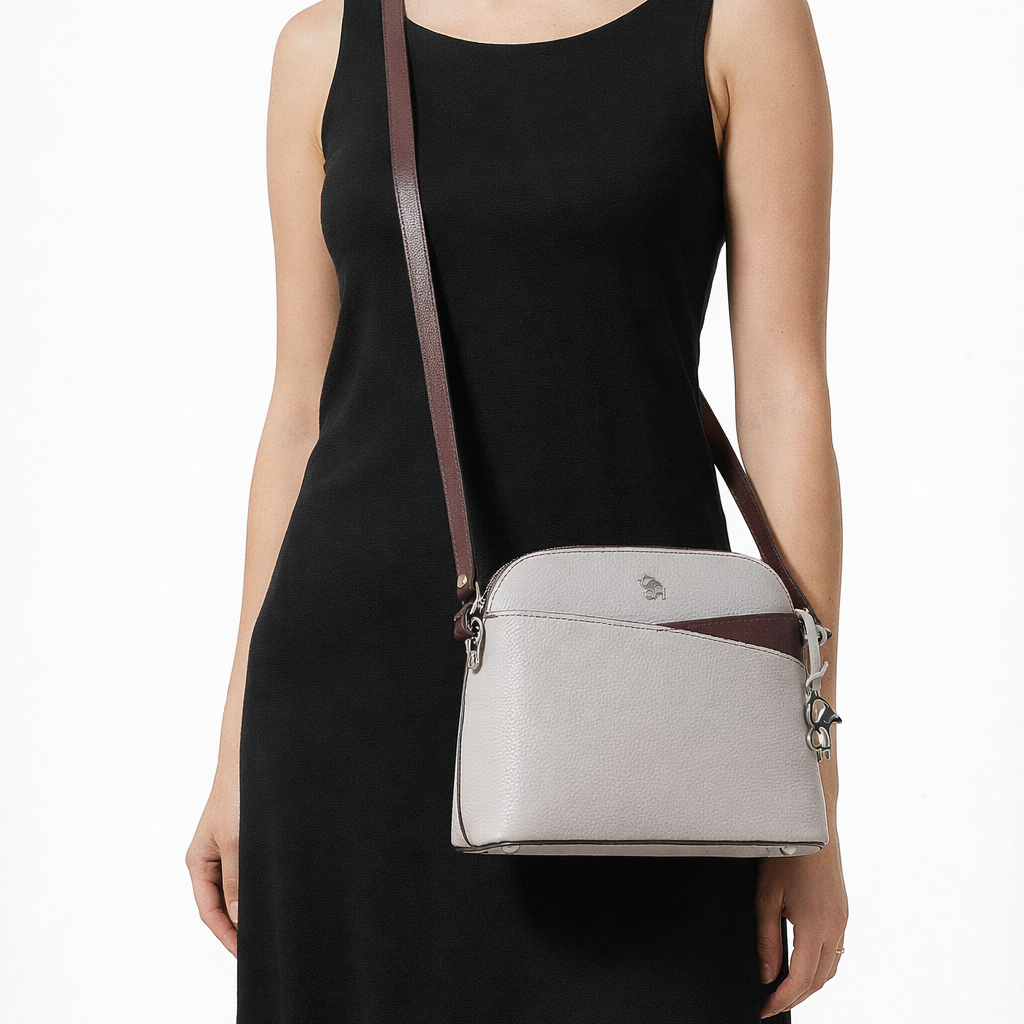 Kompakte Umhängetasche mit minimalistischem, modernem Design. Gefertigt aus gehämmertem Leder, verziert mit Lederdetails, die einen raffinierten, dynamischen Kontrast erzeugen. Der übersichtliche Innenraum ist mit Logo-Stoff gefüttert und verfügt über praktische Fächer. Der verstellbare Schultergurt ermöglicht bequemes Tragen den ganzen Tag. Eine vielseitige und unverwechselbare Tasche für alle, die authentischen, zeitlosen Stil suchen.