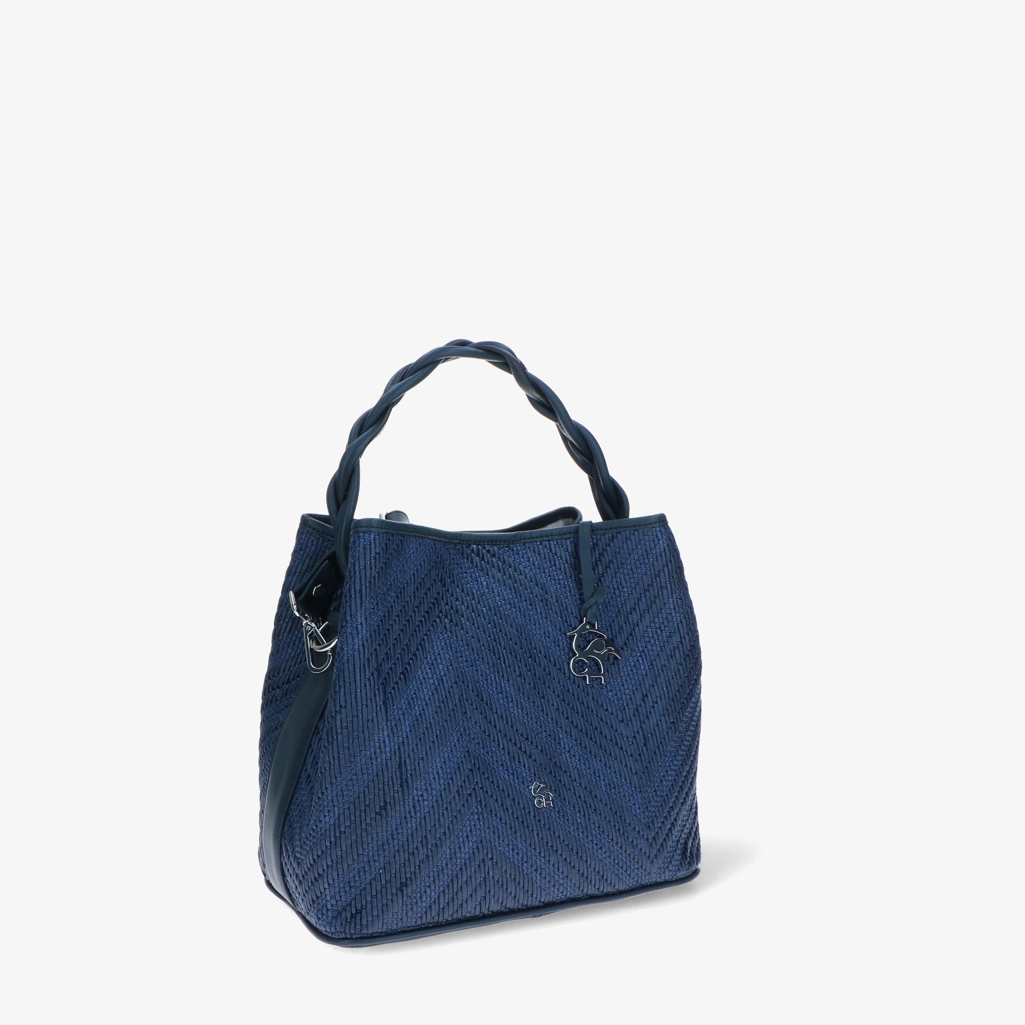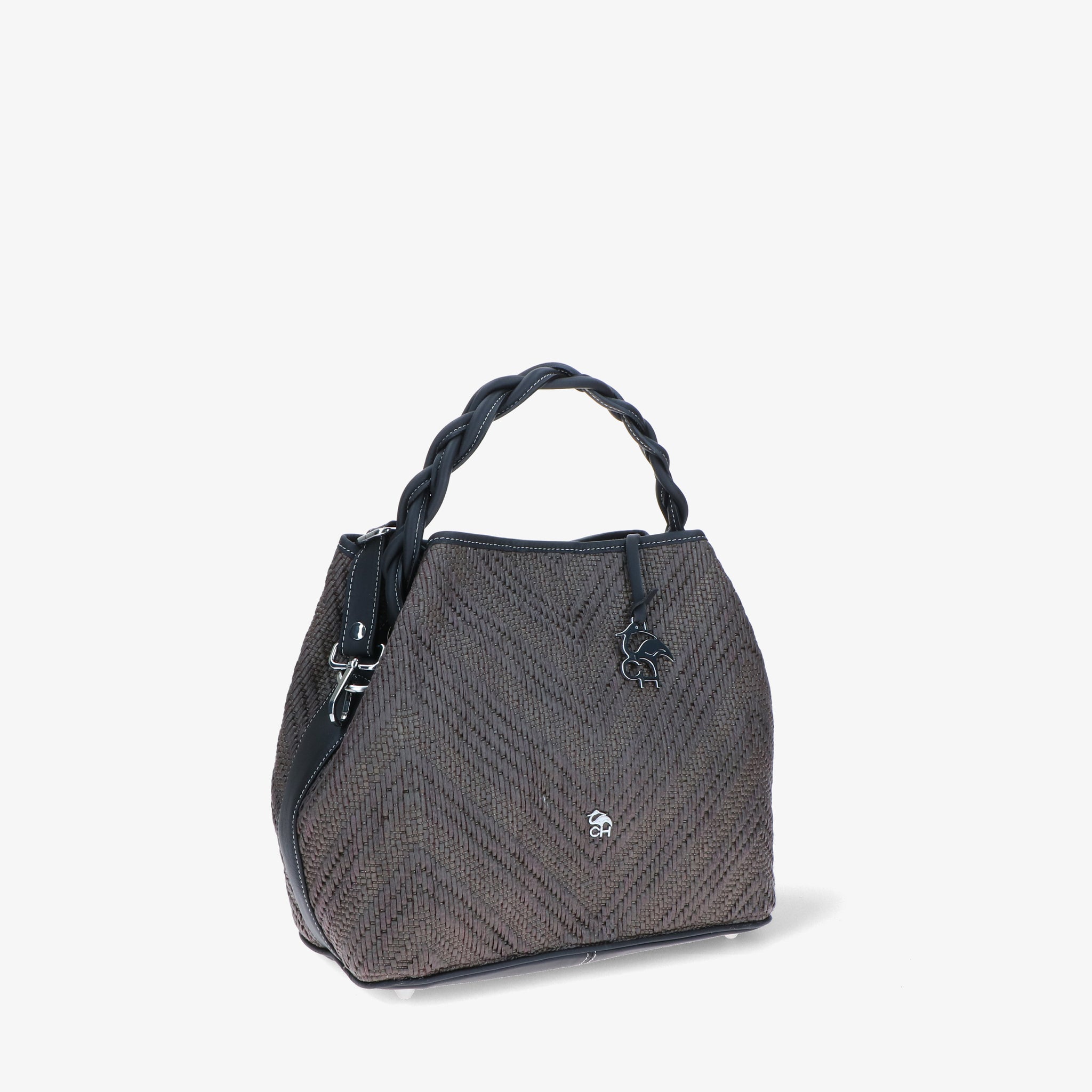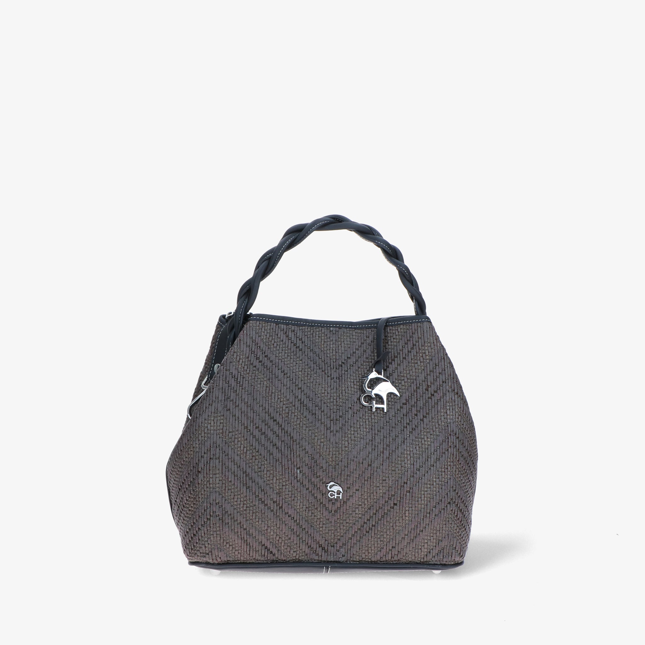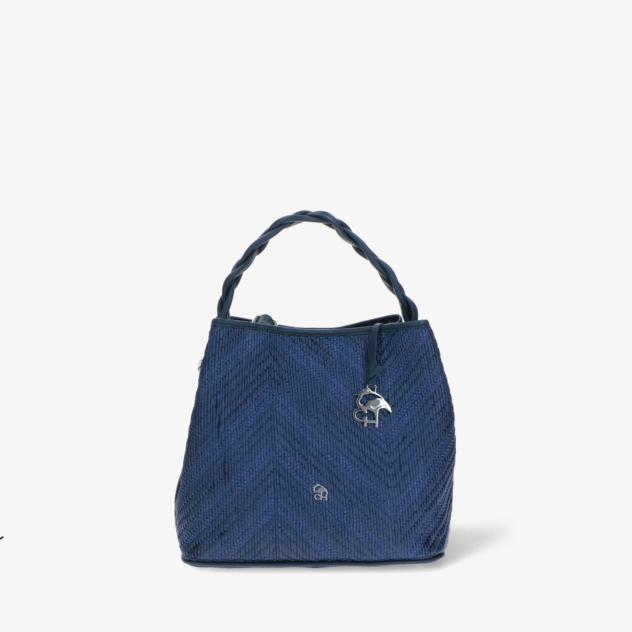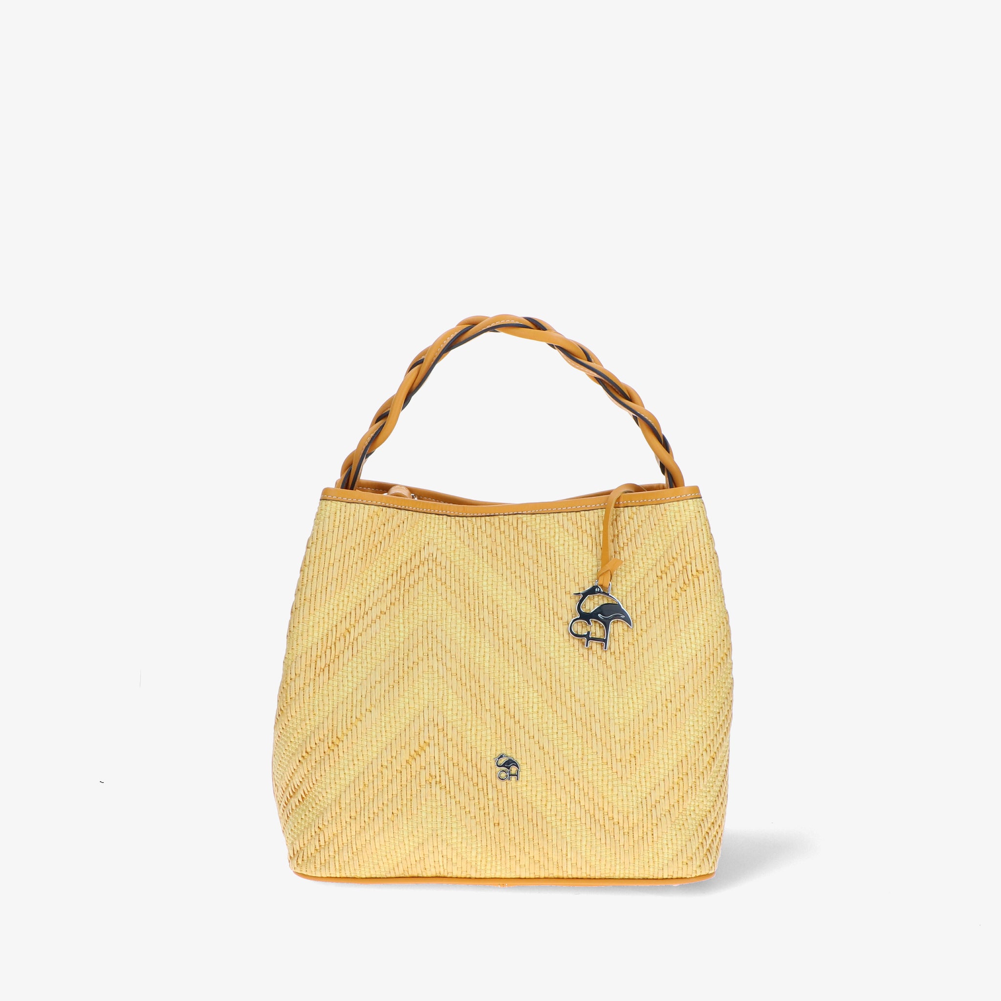Elegante und moderne Handtasche aus Bast und Leder. Der geflochtene Ledergriff verleiht einen skulpturalen und markanten Touch, während die Baststruktur an die Sommeratmosphäre erinnert. Das geräumige und funktionelle Innere ist darauf ausgelegt, alles, was Sie brauchen, ordentlich aufzubewahren. Der verstellbare Schulterriemen macht sie noch vielseitiger und perfekt, um Sie stilvoll durch den Tag zu begleiten.