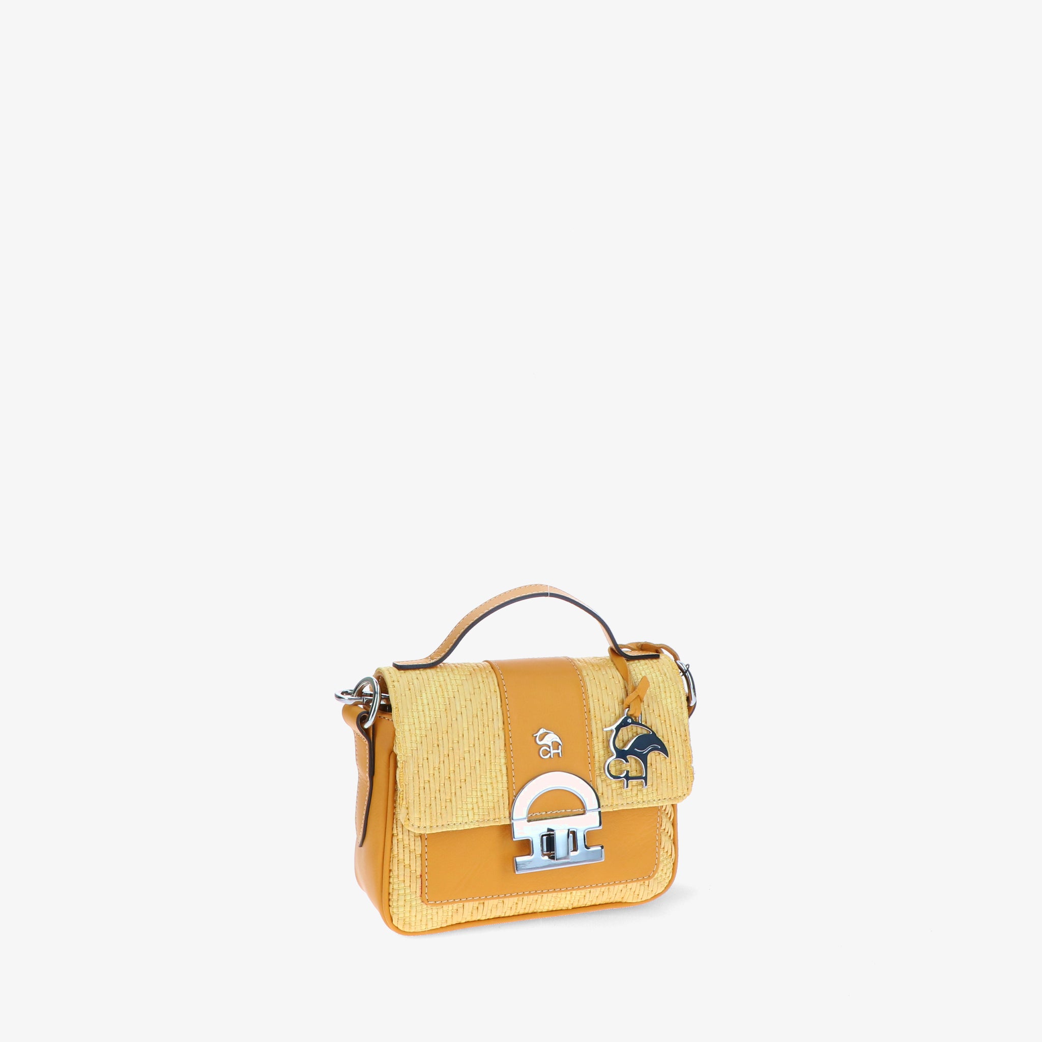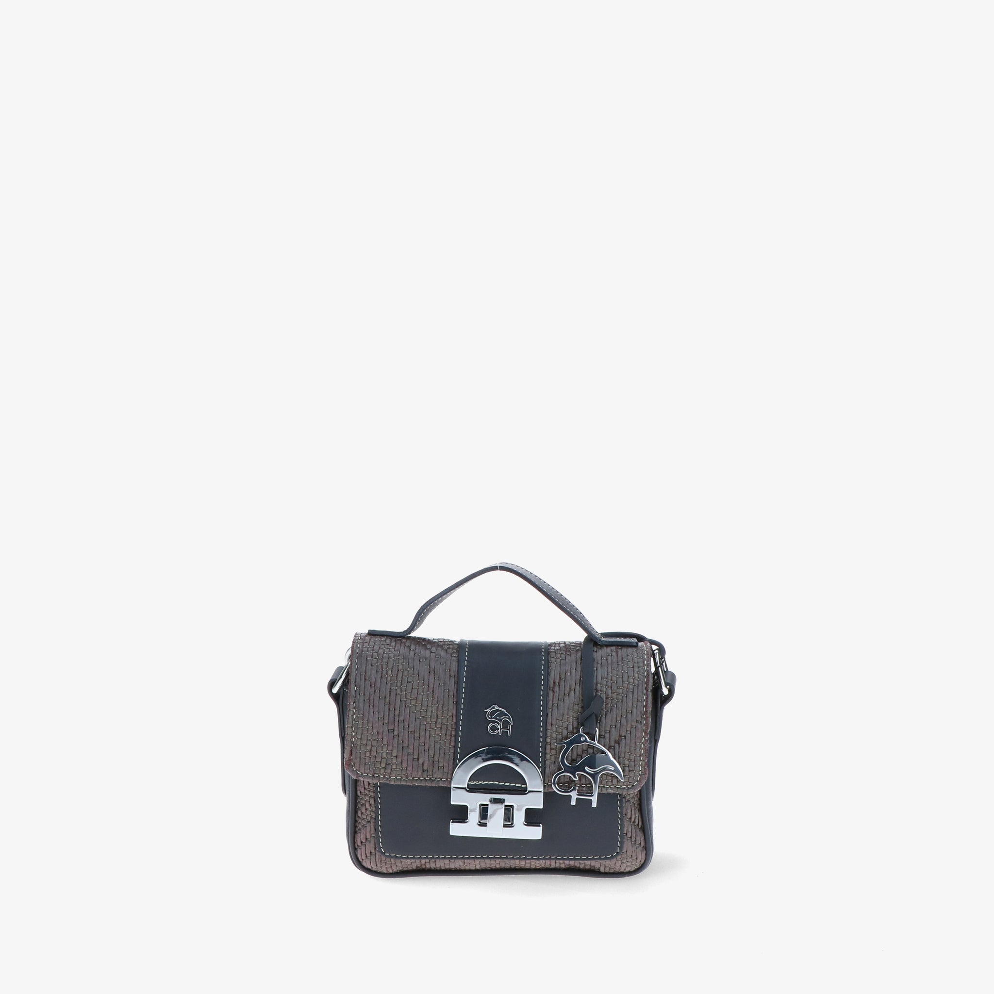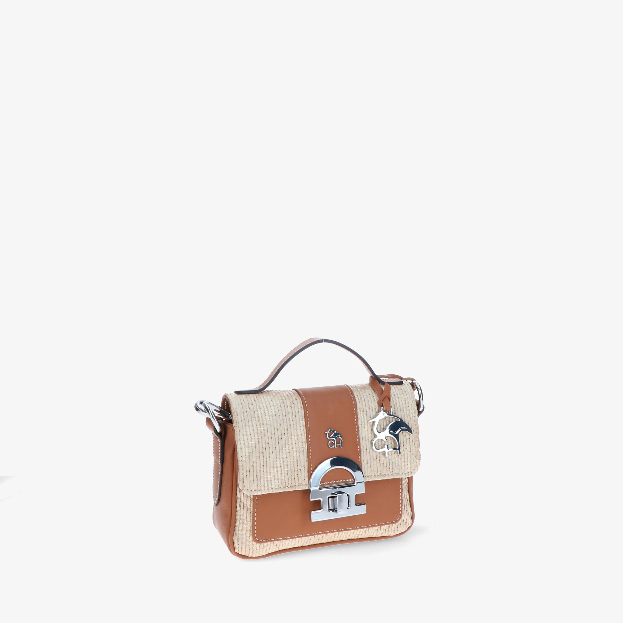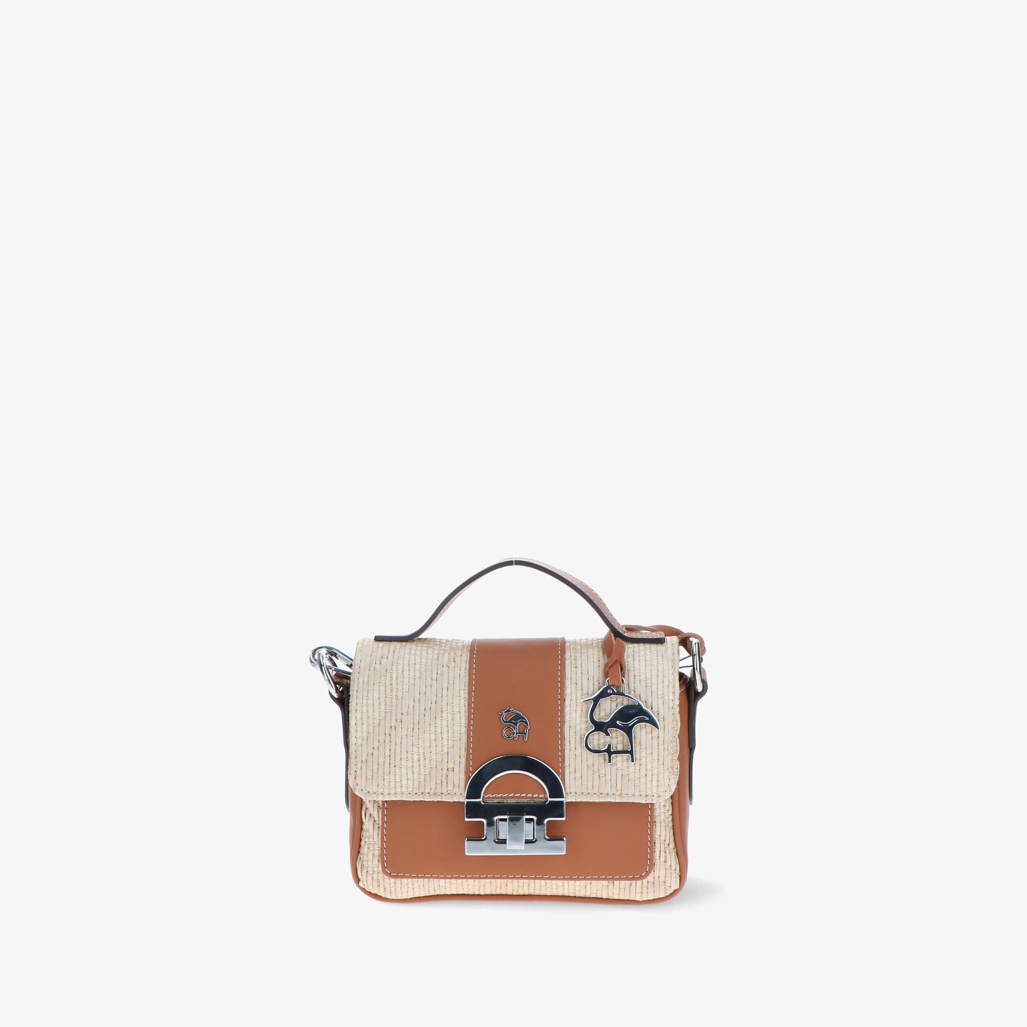 Minibag aus geflochtenem Bast mit Lederbesätzen, gekennzeichnet durch die Klappe mit ikonischem CH-Accessoire, das dem Design Charakter und Wiedererkennungswert verleiht.