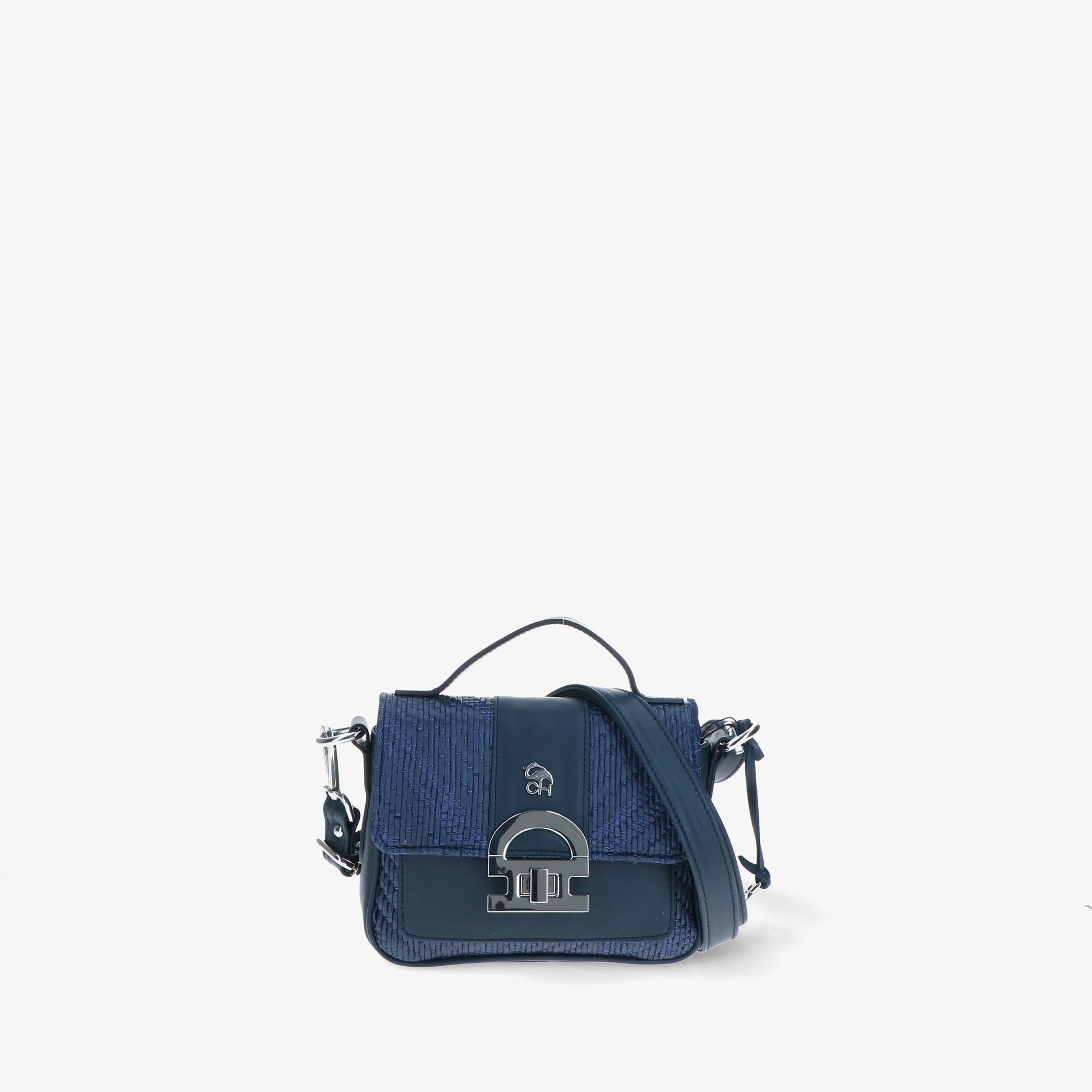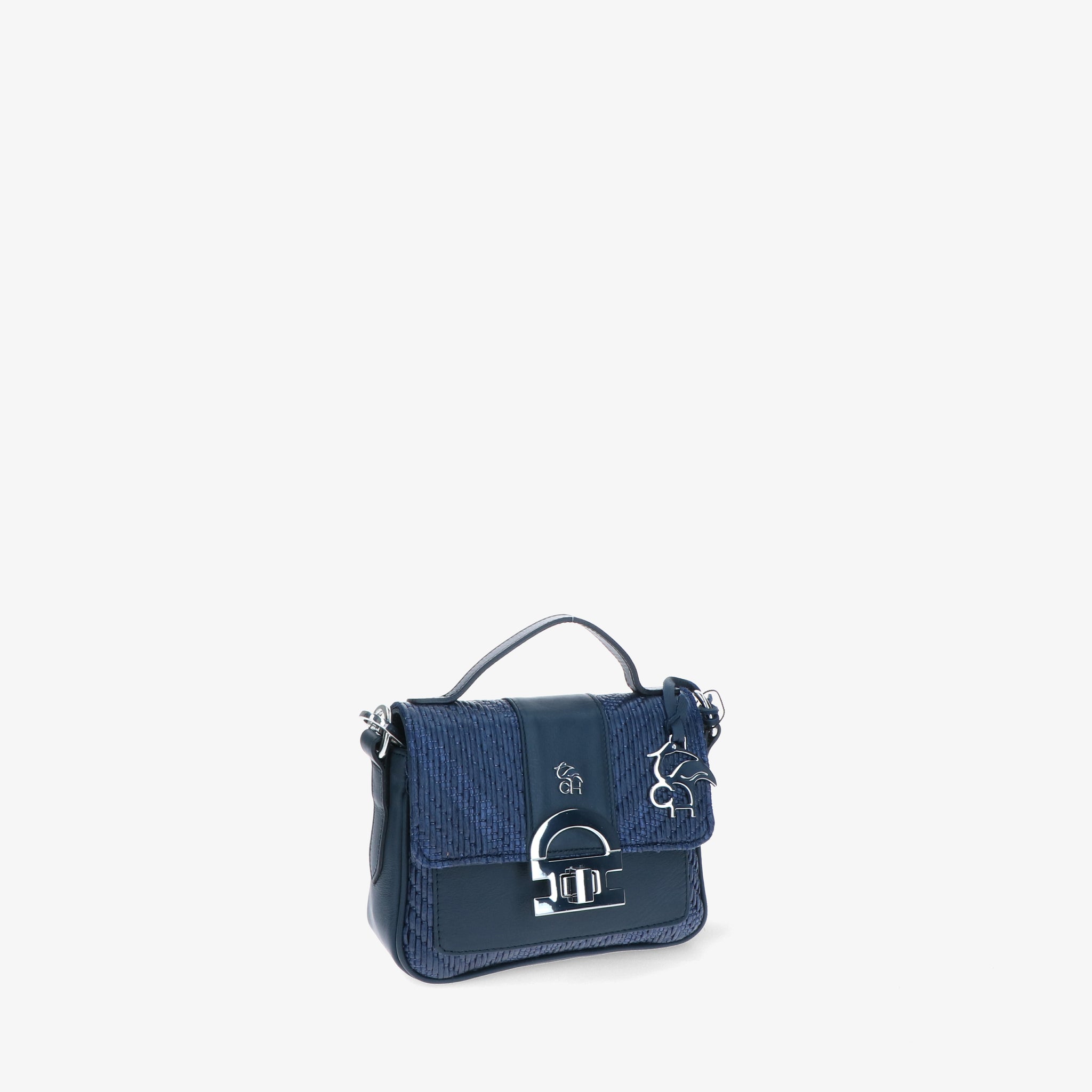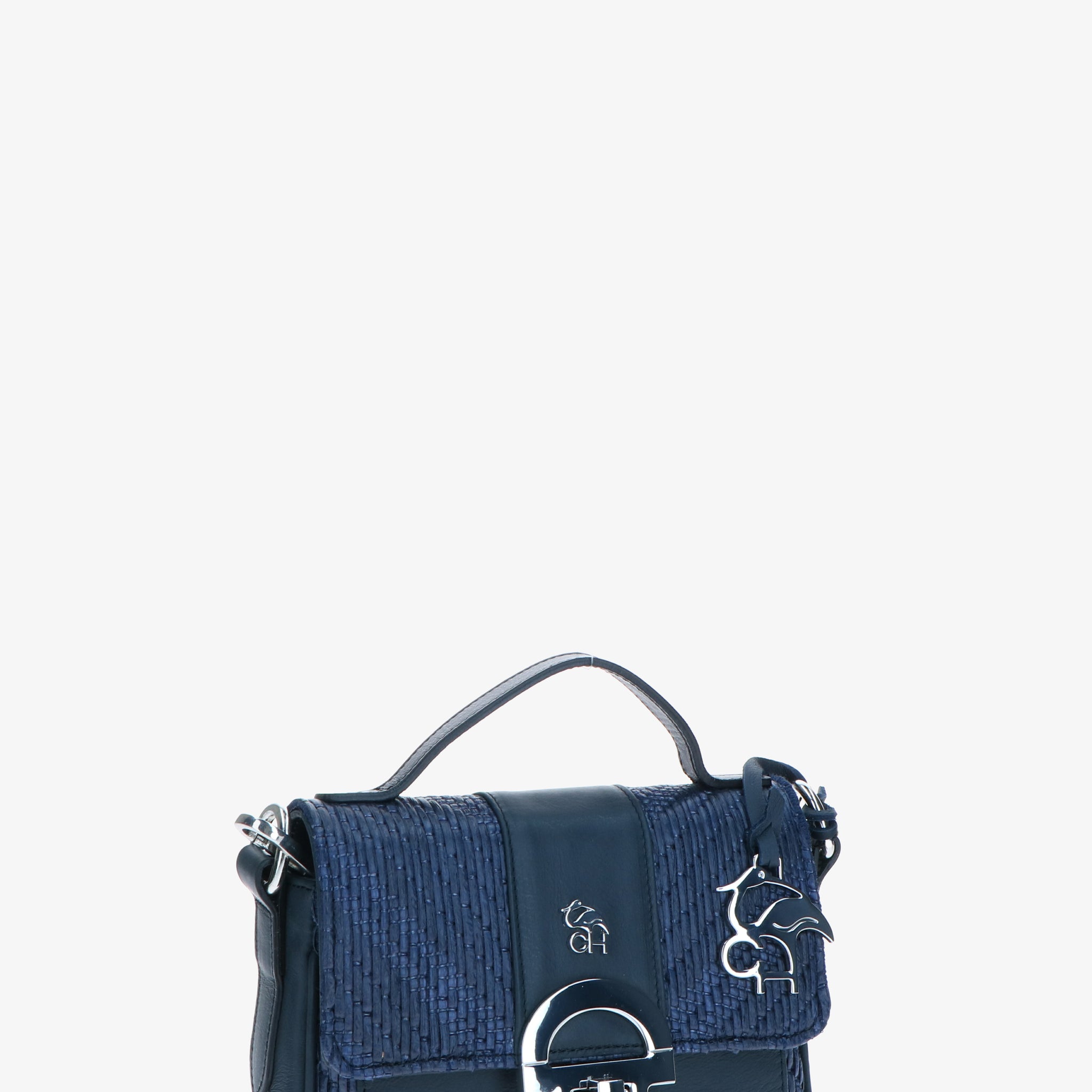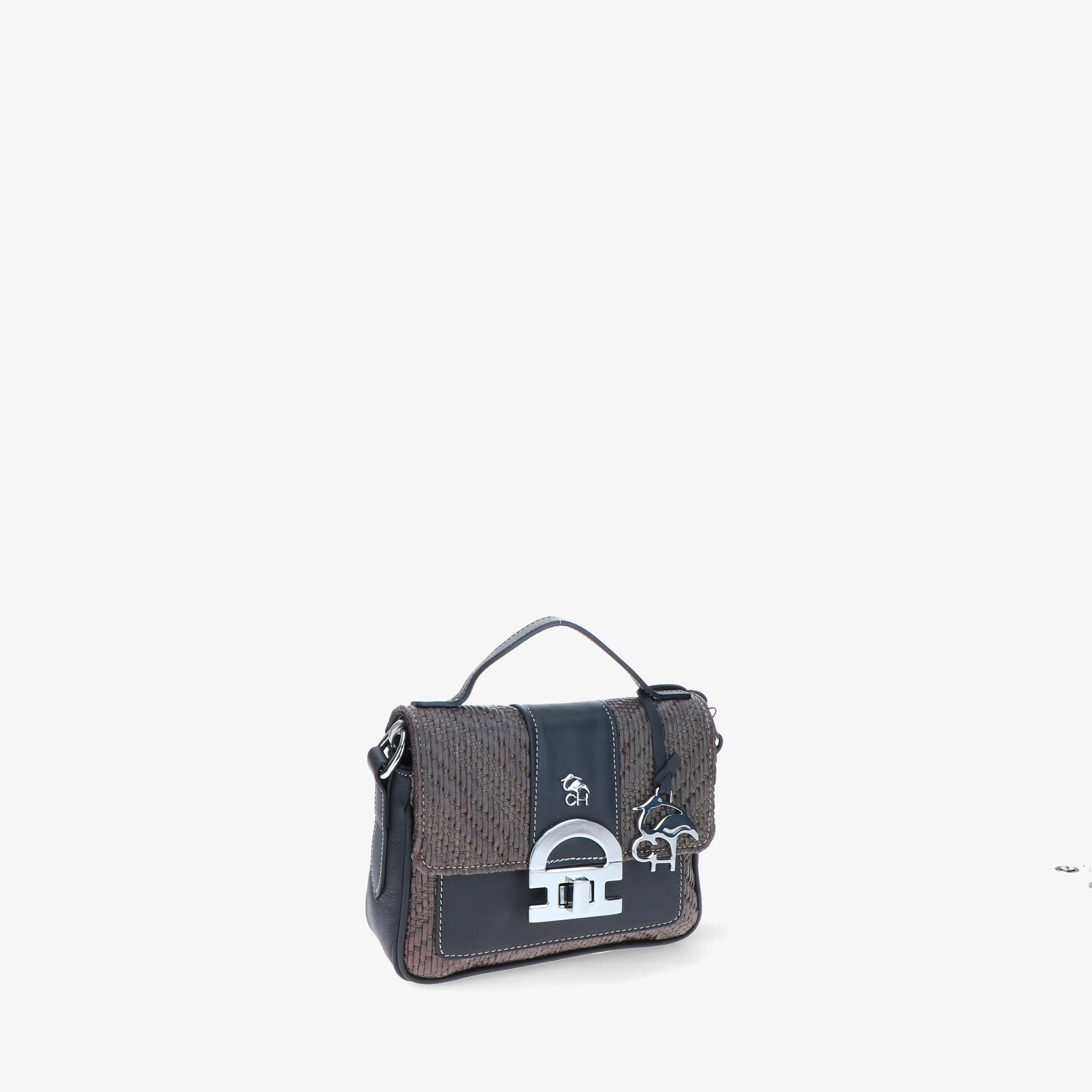 Minibag aus geflochtenem Bast mit Lederbesätzen, gekennzeichnet durch die Klappe mit ikonischem CH-Accessoire, das dem Design Charakter und Wiedererkennungswert verleiht.