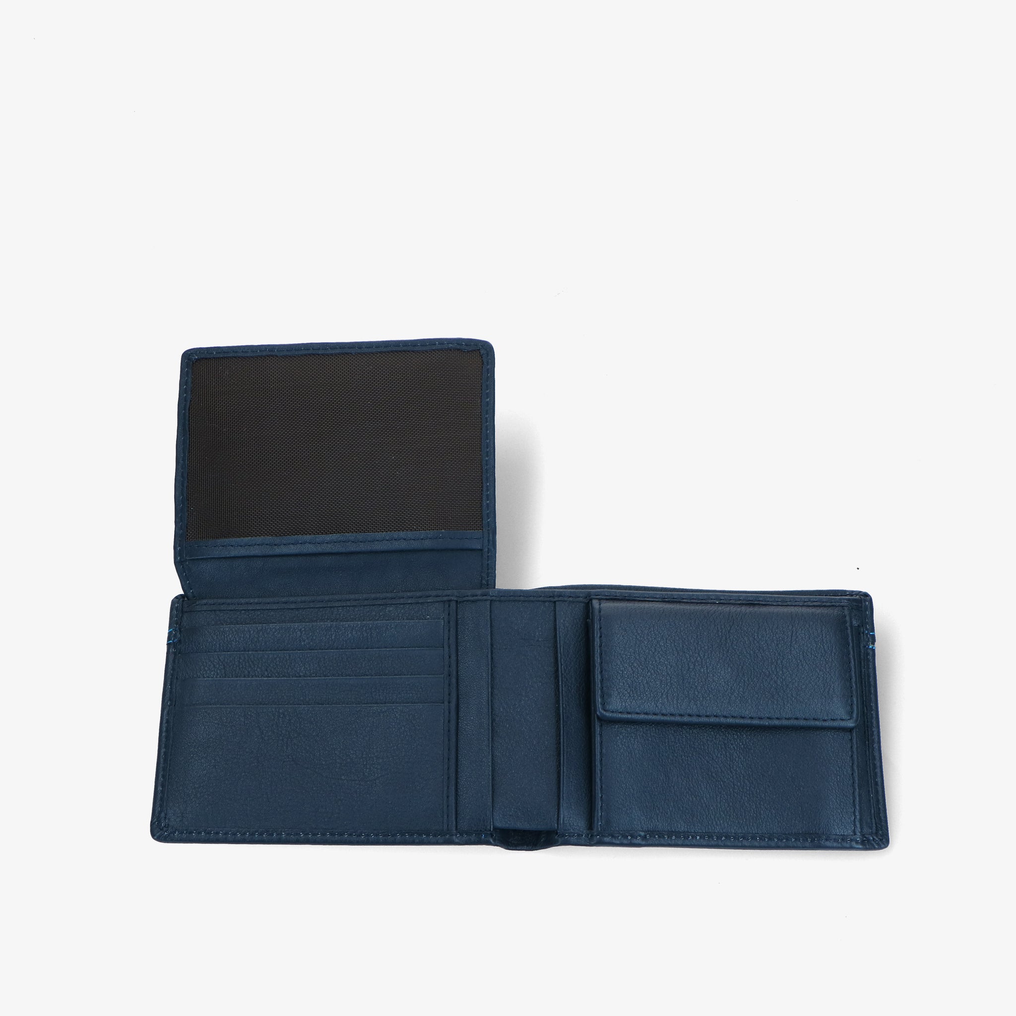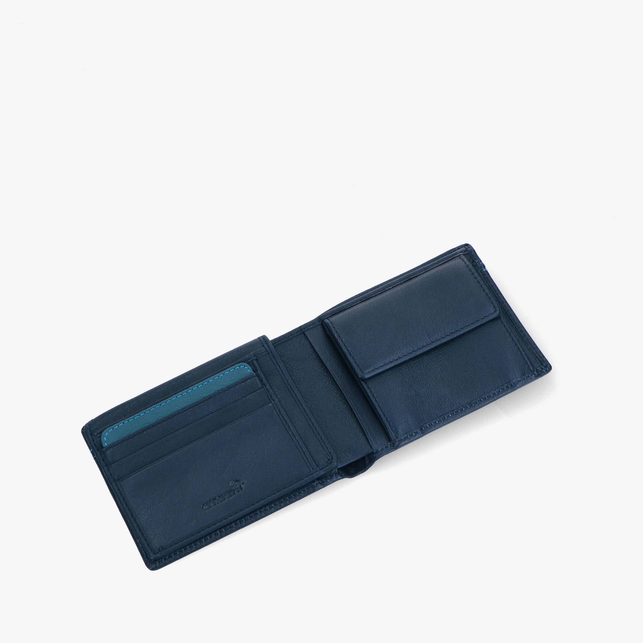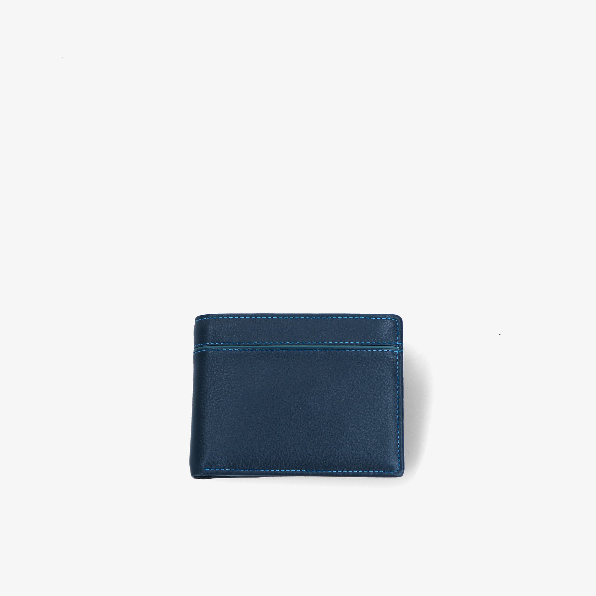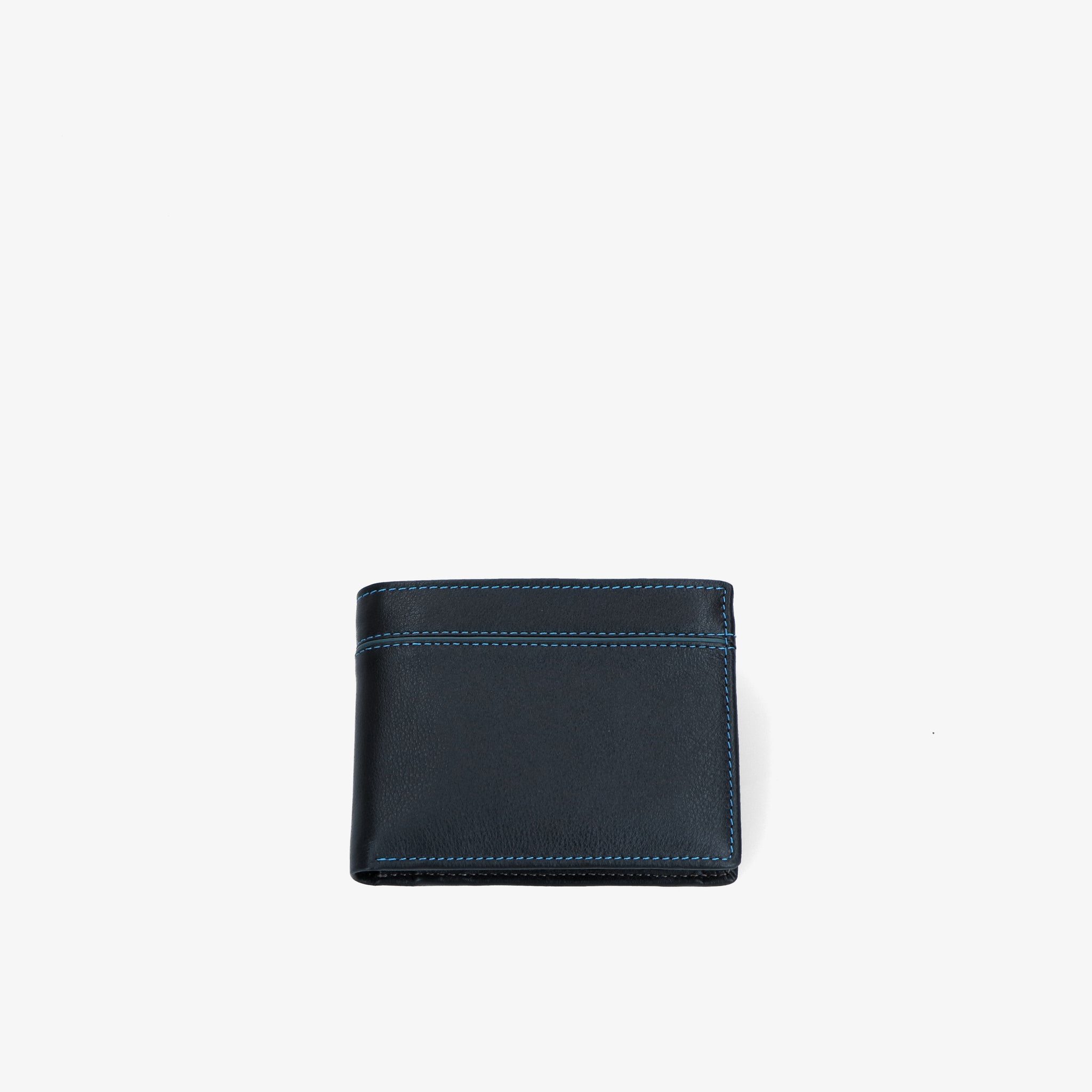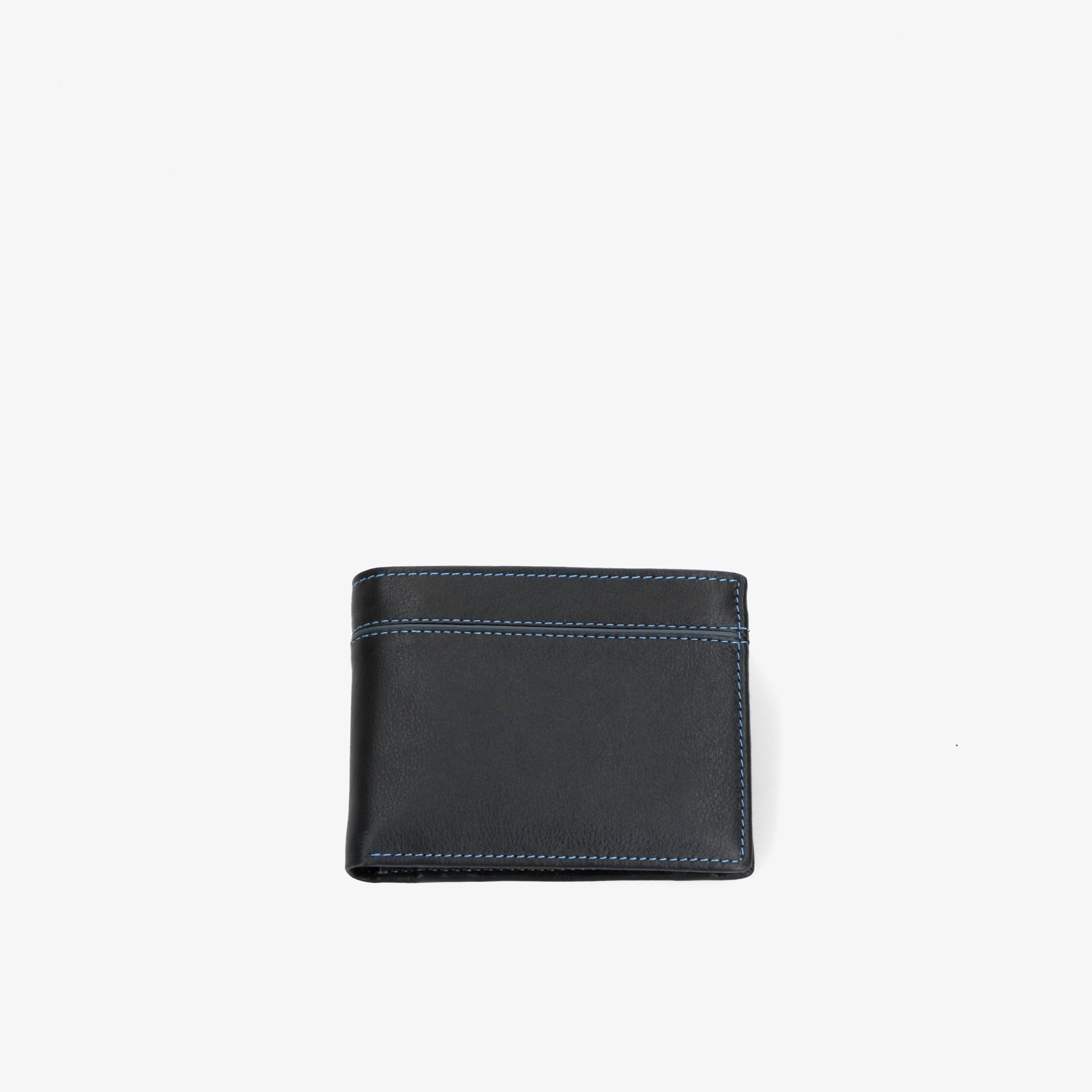 Wallet crafted from soft leather, with a pleasant feel and natural texture. The contrasting blue stitching detail adds a subtle yet distinctive accent.