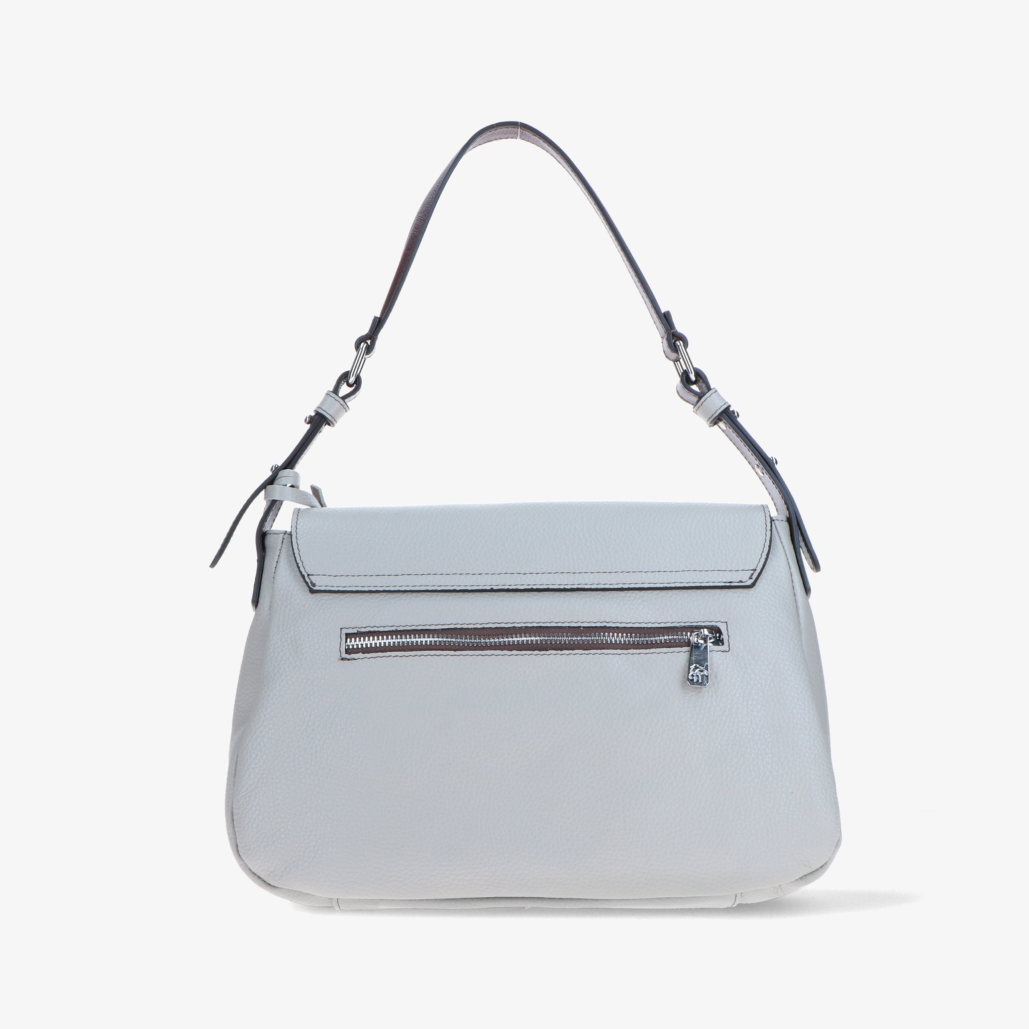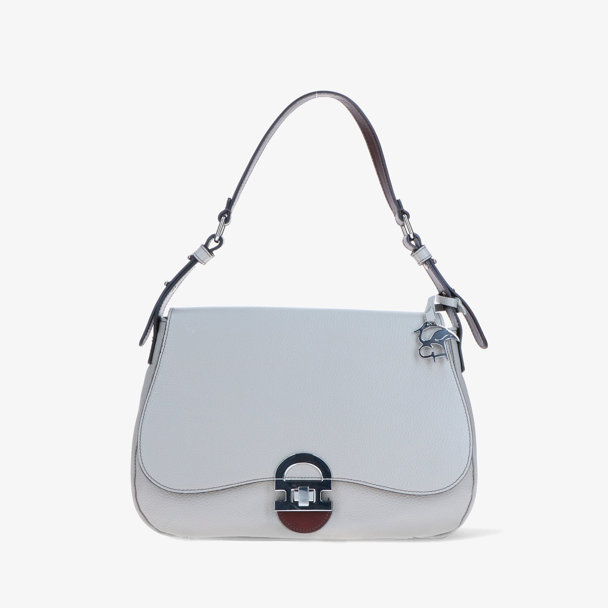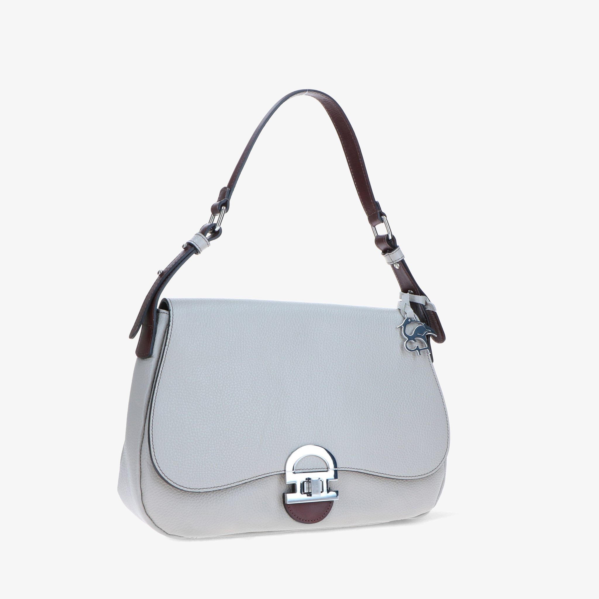 Shoulder bag crafted from hammered leather, with a natural grain and soft touch, enhanced by leather trims that create an elegant chromatic contrast.