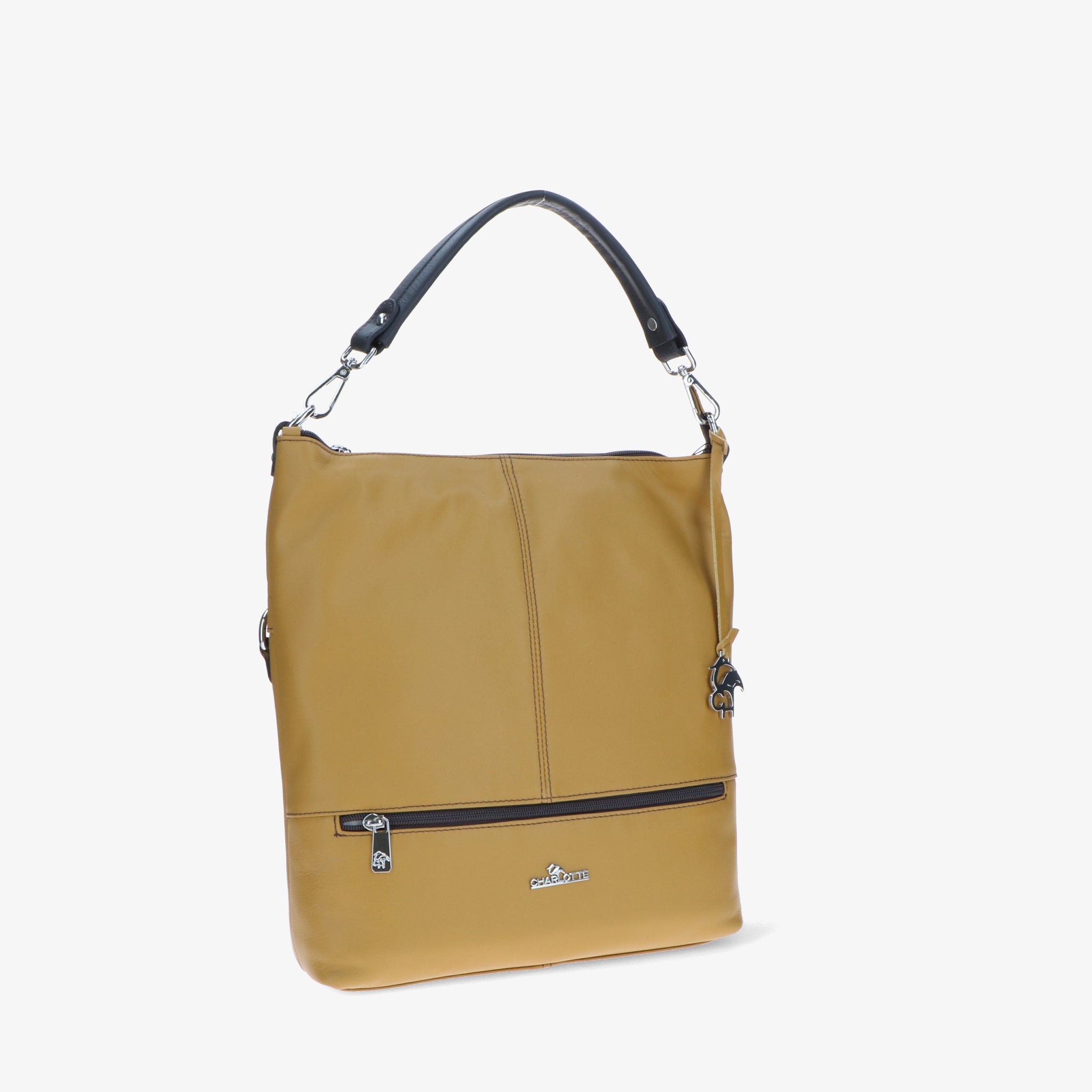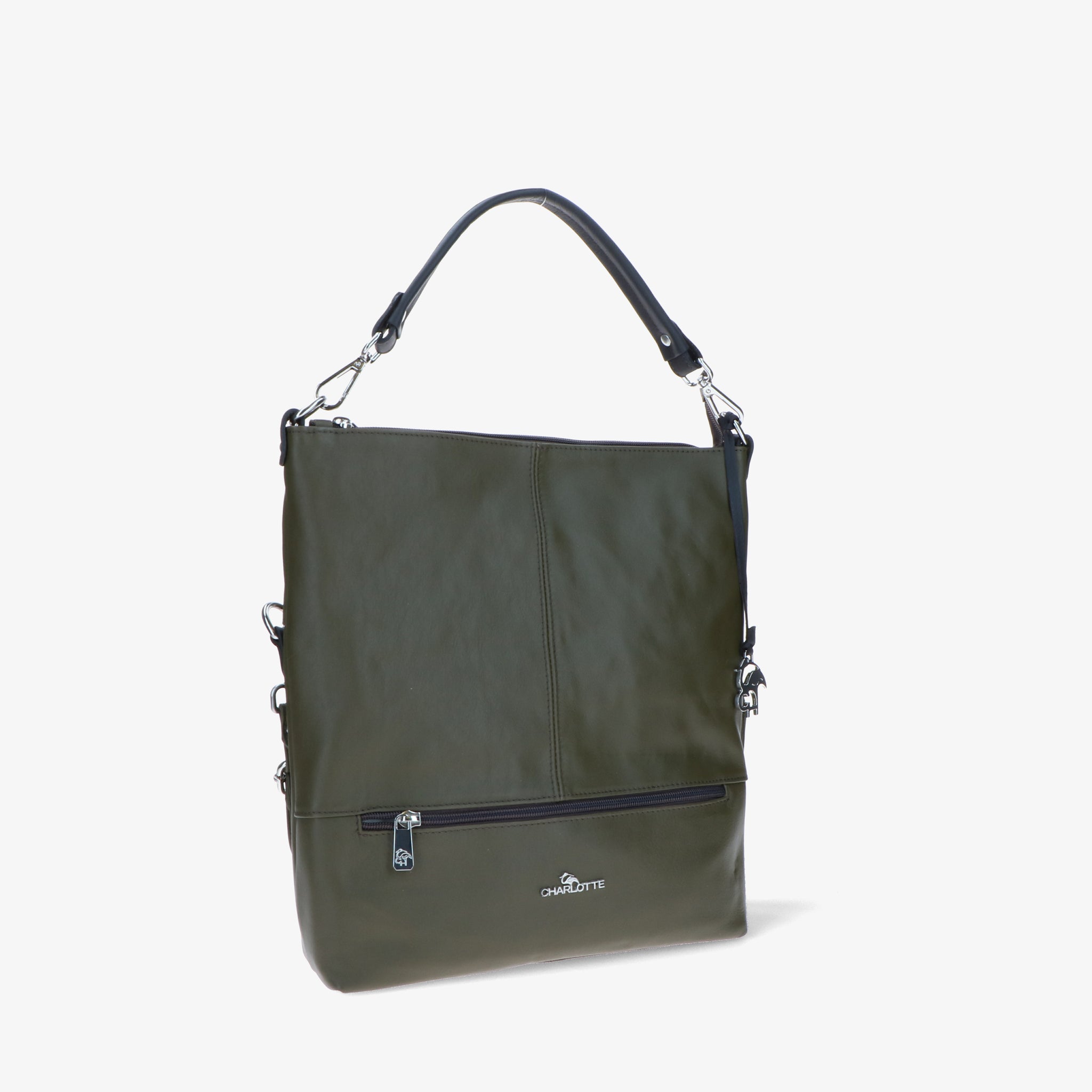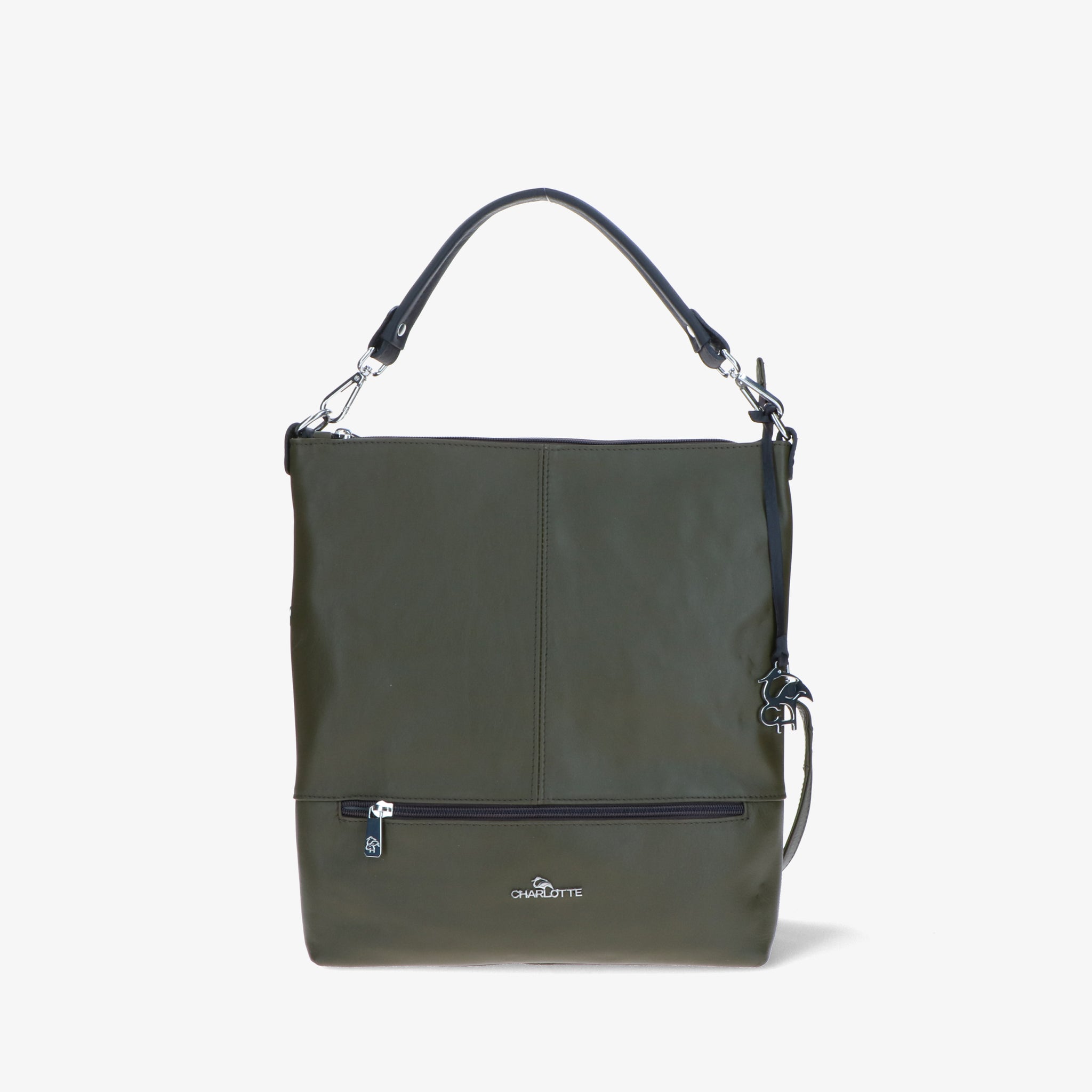 Borsa a spalla in morbida pelle, progettata per adattarsi a diverse esigenze di utilizzo. La sua struttura flessibile permette di essere indossata nella lunghezza completa oppure piegata, per una versione più compatta e contemporanea. Il sistema di manico e tracolla è completamente intercambiabile: il manico corto e la tracolla lunga regolabile possono essere scambiati e combinati, offrendo molteplici modalità di utilizzo a spalla o crossbody, a seconda dello stile e del momento della giornata. L’interno è capiente e funzionale, organizzato con tasche per mantenere tutto in ordine, mentre le tasche esterne con zip consentono un accesso rapido agli oggetti essenziali.