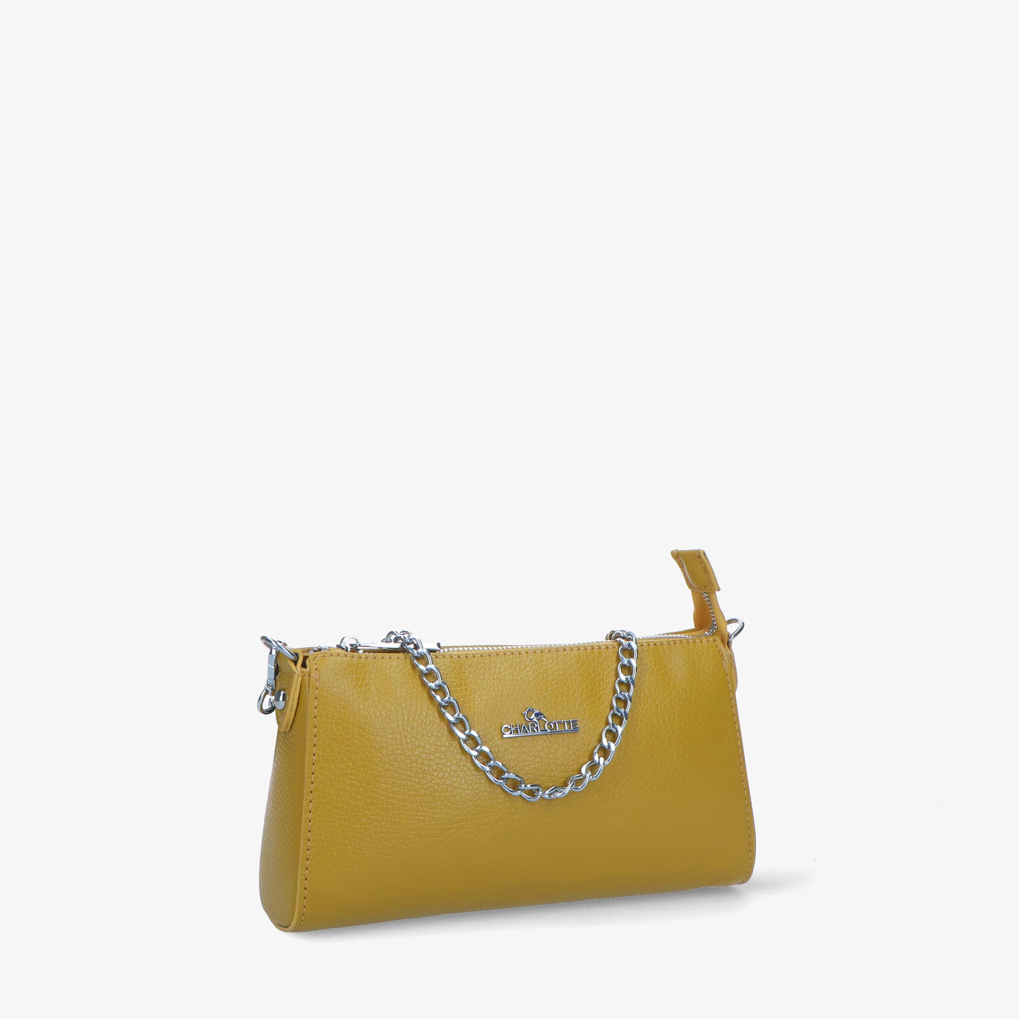 Borsa compatta in pelle martellata dalla grana fine, dal design essenziale e contemporaneo. La catena aggiunge un tocco deciso ed elegante, mentre la tracolla regolabile e rimovibile permette di indossarla a spalla o crossbody, adattandosi con naturalezza a look importanti o più informali. L’interno è foderato e organizzato con tasche, ideale per avere l’essenziale sempre a portata di mano.