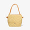 Borsa a spalla in rafia intrecciata con finiture in pelle, caratterizzata da una forma morbida ispirata al secchiello. La texture materica dona movimento e leggerezza al design.